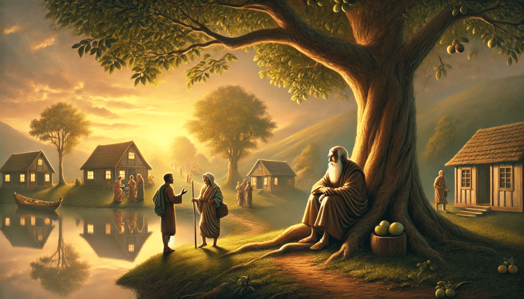 Se spune că, într-o zi, un călător a ajuns la marginea unui sat. L-a întâmpinat un bătrân înțelept, care stătea liniștit sub un copac.